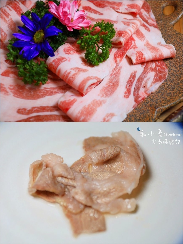 牛肉片紅白相間各半,白色的脂肪均勻分佈,如雪花般細密,