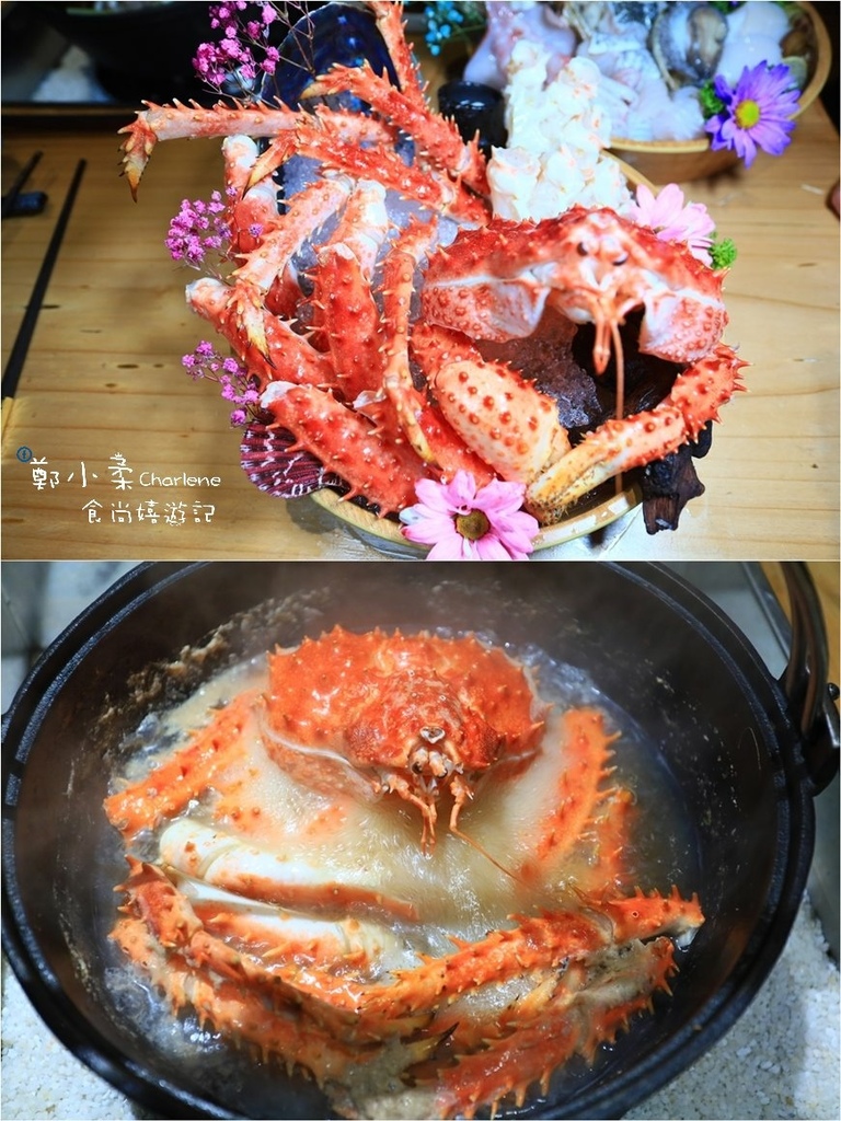 帝王蟹的身體我們請餐廳用烤的(可選用火鍋烹煮,或是用烤的),