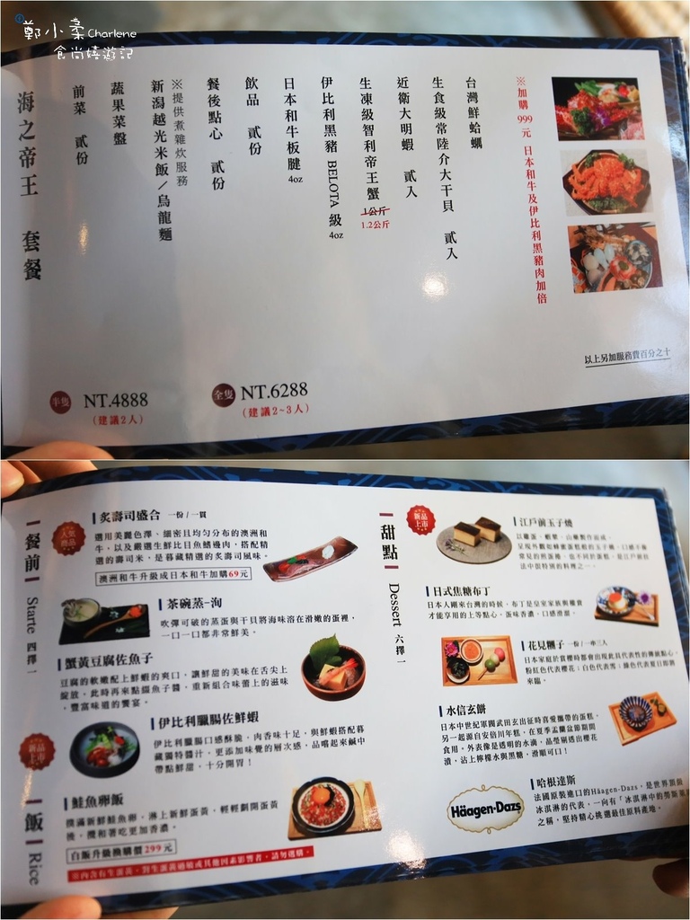 並加購日本和牛及伊比利黑豬肉加倍,會有餐前餐點和甜點喔!