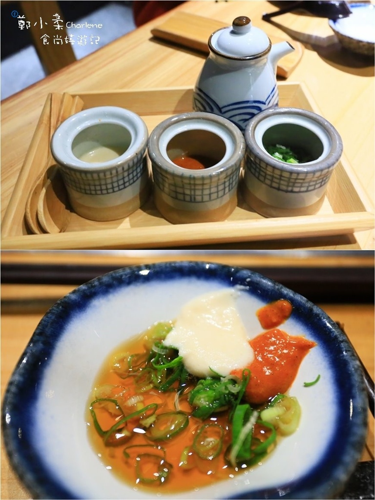 火鍋沾醬為日式醬油、特製醬料、辣椒醬和青綠蔥花,